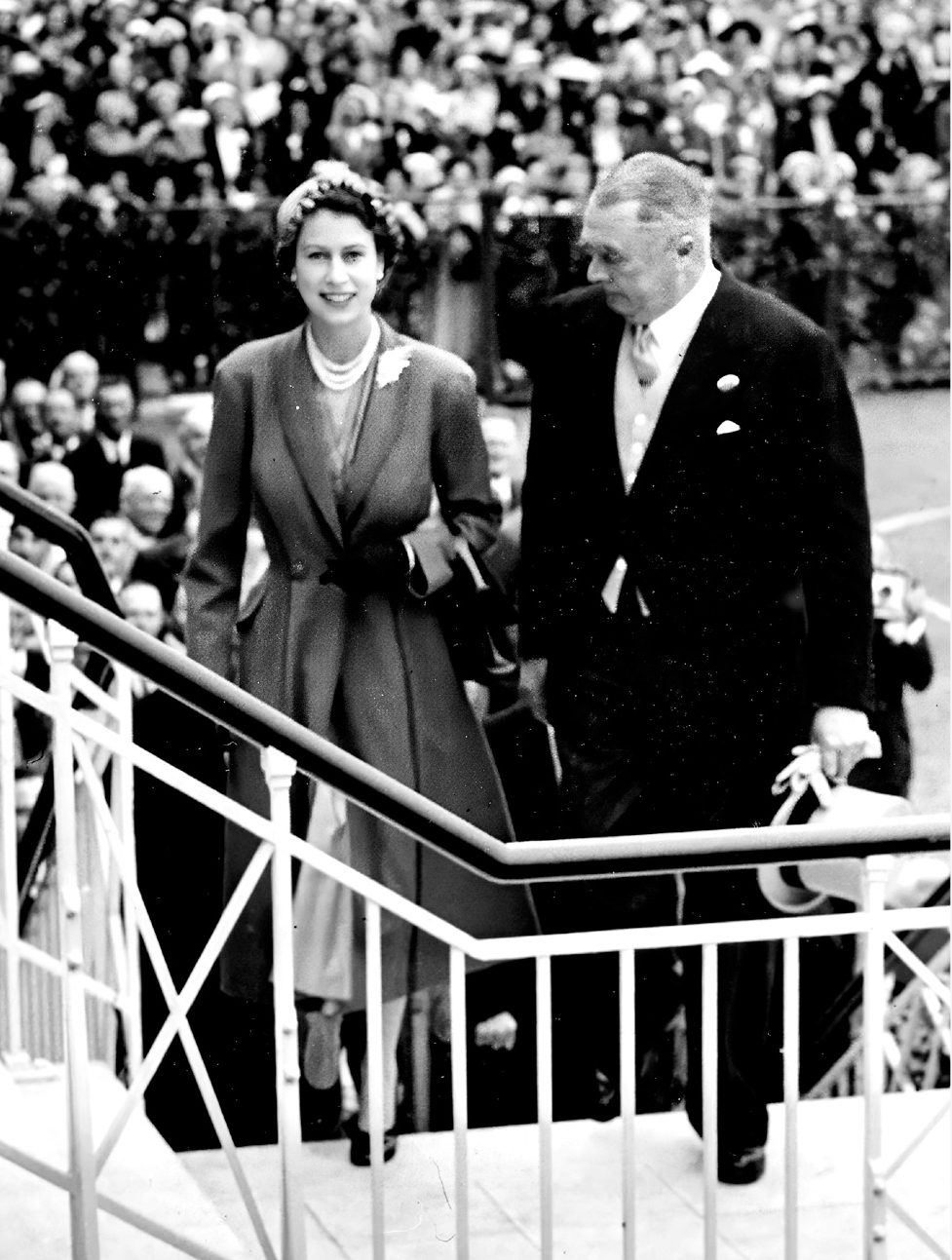 Her Majesty Queen Elizabeth II’s Royal Visit to Flemington 1954 with Sir Chester Manifold, Victoria Racing Club Chairman (Argus photo, Fairfax photo archive).
